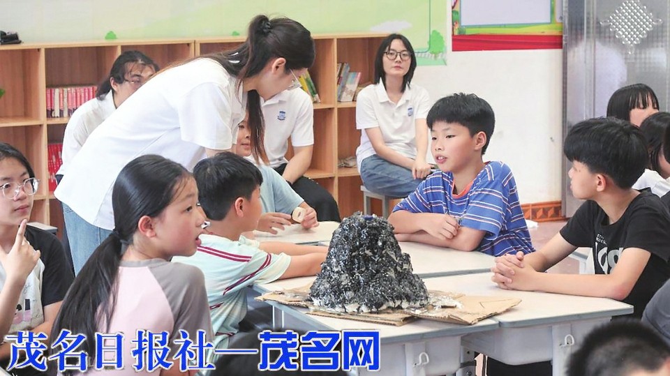 “鉴微突击队”与孩子们一起做“火山喷发”实验。 通讯员 唐姝悦 摄