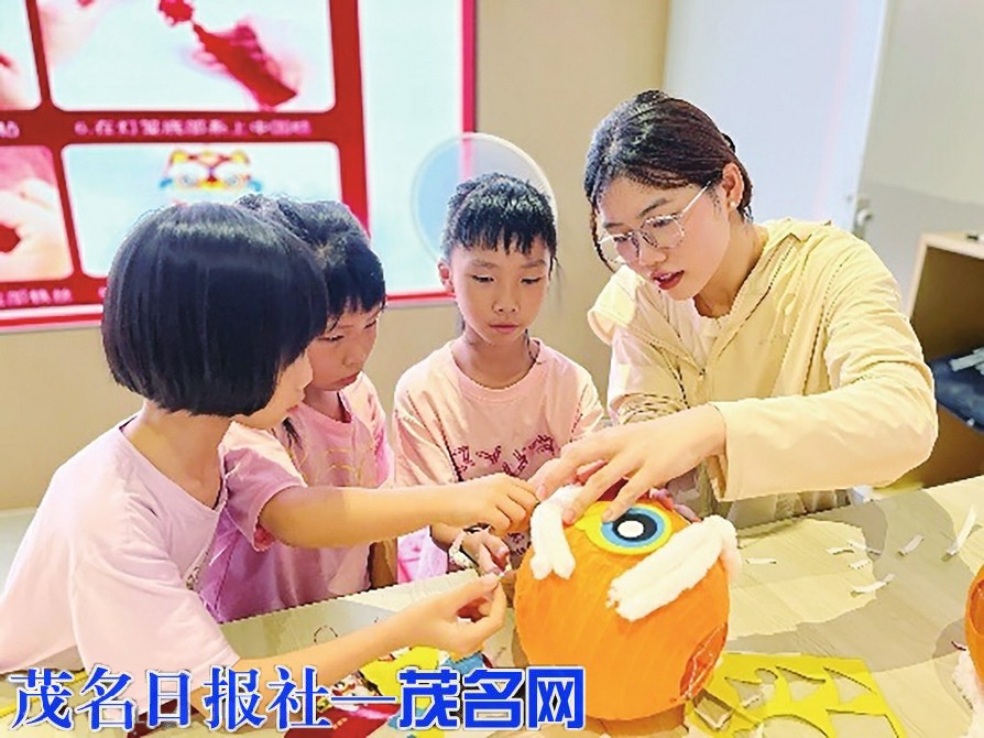 茂名晚报讯 记者 赖碧怡 为弘扬广府传统文化,助力非遗传承,近日,广东石油化工学院经济管理学院绿野乡兴助农实践团与高州市巾帼志愿者协会喜鹊桥志愿服务队携手,走进高州城东社区义教班开展了一场“醒狮文化进校园”主题支教活动。30余名小学生通过醒狮小课堂、手工制作醒狮小灯笼、黏土制作簸箕炊体验等环节,在动手实践中触摸传统文化,为乡村注入鲜活的青春活力。