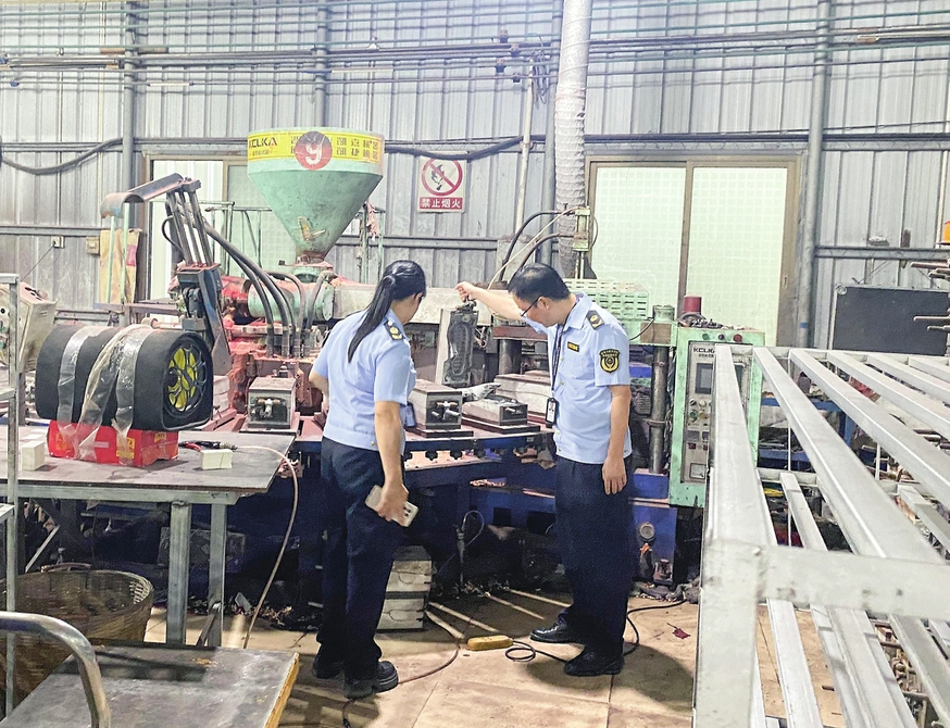 标签显示,该款童鞋的生产商为广东省吴川市某塑料鞋厂。记者将检测结果反映给当地市场监管部门,执法人员随即前往该塑料鞋厂开展检查,现场未发现记者所购买的“T16”款童鞋。经询问该厂负责人,“T16”款童鞋已于2020年停产。执法人员对该厂区正在生产的童鞋进行抽查,检验发现仍有一款童鞋不合格。