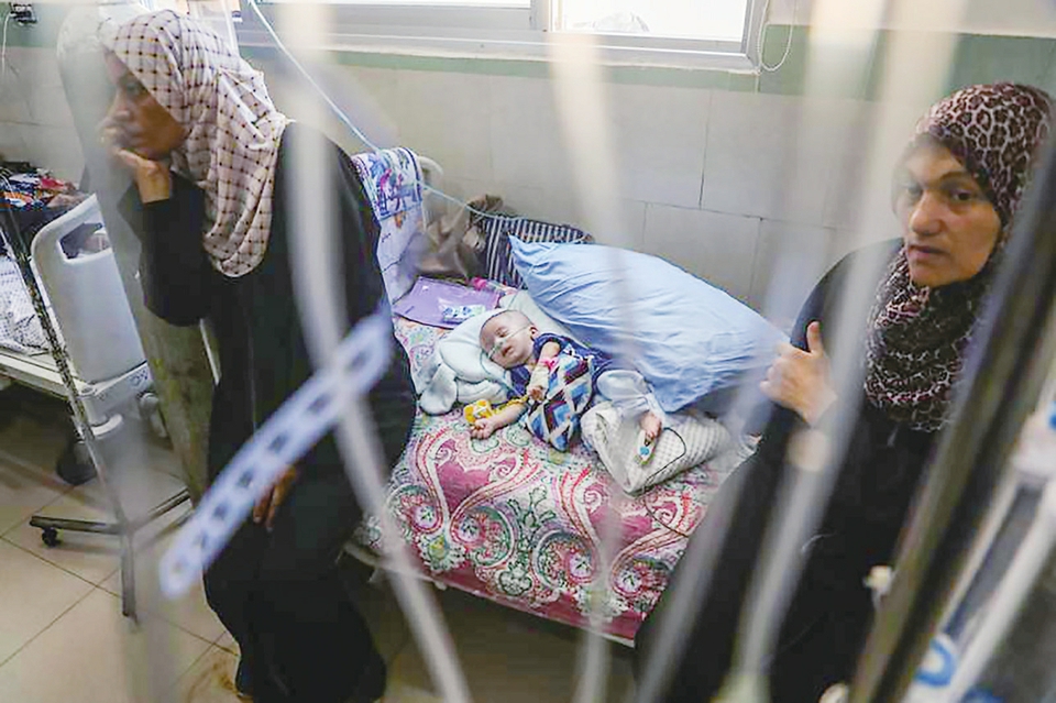 7月23日,在加沙城一所医院里,两名女子陪伴一名营养不良的儿童。新华社发(里泽克·阿卜杜勒贾瓦德摄)