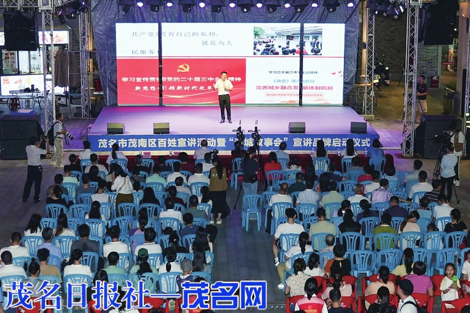 茂名市茂南区百姓宣讲活动暨“油城故事会”宣讲品牌是由茂名市茂南区新时代文明实践中心指导,中共茂名市茂南区委宣传部、茂名市茂南区文化广电旅游体育局主办,茂名日报社承办,以创新理论宣讲为使命,以文化传承为纽带,旨在更好培育理论政策宣讲队伍,激发全区干部群众干事创业热情,营造积极向上的社会氛围,为茂南高质量发展注入思想动能。