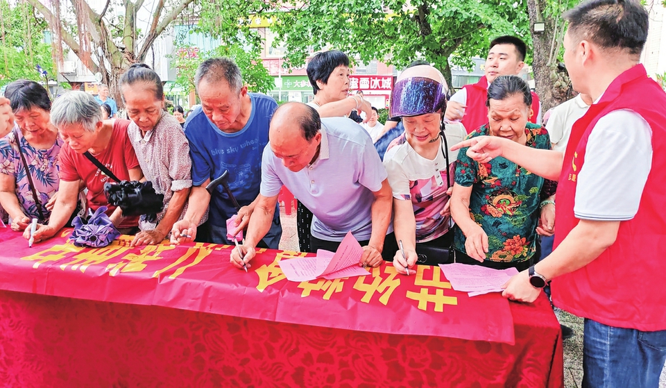 市民签名支持“节约粮食拒绝浪费”的倡议。茂名日报社全媒体记者 岑稳 摄