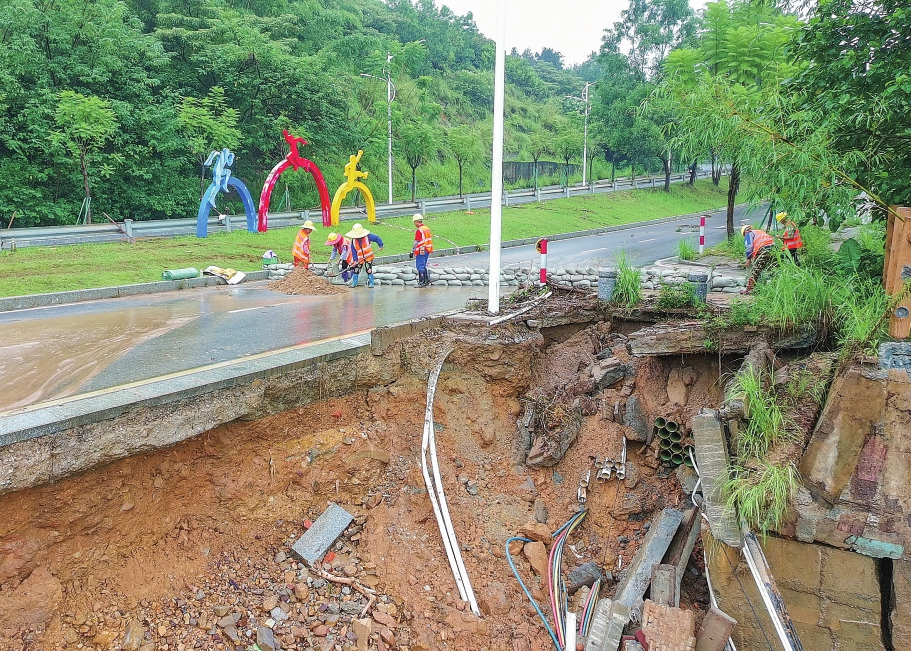 4日19时40分,广佛肇高速监控巡查发现鼎湖站至小湘站路段(K112+900处)突发线外泥石流,约1200立方米泥石瞬间倾泻至路面,现场拥堵近1.5公里,往广西方向三条主车道全部受阻。22时25分,距事发点2公里左右的端州站双向出入口匝道再遇险情——线外山体冲沟形成泥石流,约800立方米泥石覆盖匝道。