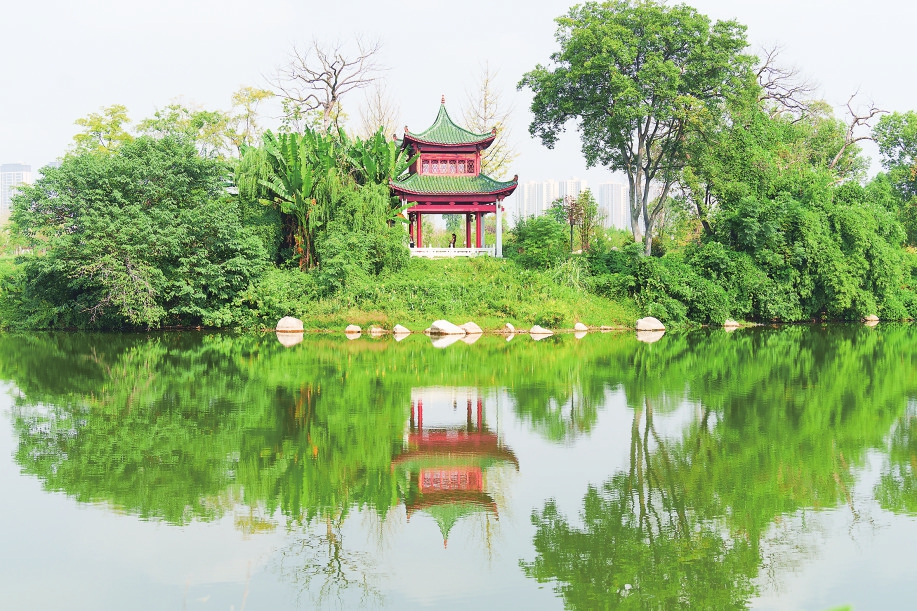 这是2024年9月27日在冷水滩区宋家洲生态公园拍摄的一处内湖水域。 新华社发(雷中祥 摄)