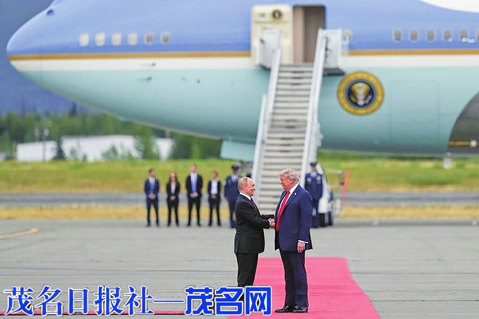 当地时间8月15日11时许,美国总统特朗普(前右)和俄罗斯总统普京在美国阿拉斯加州安克雷奇市埃尔门多夫-理查森联合军事基地的机场会面。新华社/美联