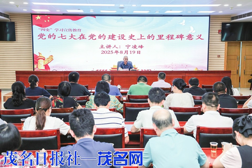 茂名晚报讯 记者 谢力忠 根据市委关于推动理想信念教育常态化制度化,开展“四史”学习宣传教育的工作部署,结合抗战胜利80周年和当前的实际需求,8月19日,市卫生健康局举办一堂题为《党的七大在党的建设史上的里程碑意义》的专题党课,该局机关全体党员干部职工和局属各单位党组织党办负责人参加了当天的学习活动。