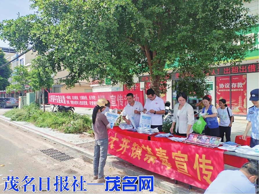 茂名晚报讯 记者柯泽彪 通讯员何俊锋为筑牢辖区平安防线,切实提升群众“一感两度”的知晓率与参与率,8月22日,高州市大井镇平安法治办牵头,联合镇司法所、派出所、禁毒办、应急办等多部门,在大井邮政储蓄银行门前集中开展平安建设暨“一感两度”主题宣传活动,同步普及扫黑除恶、禁毒、反邪教、反诈等多项安全知识。