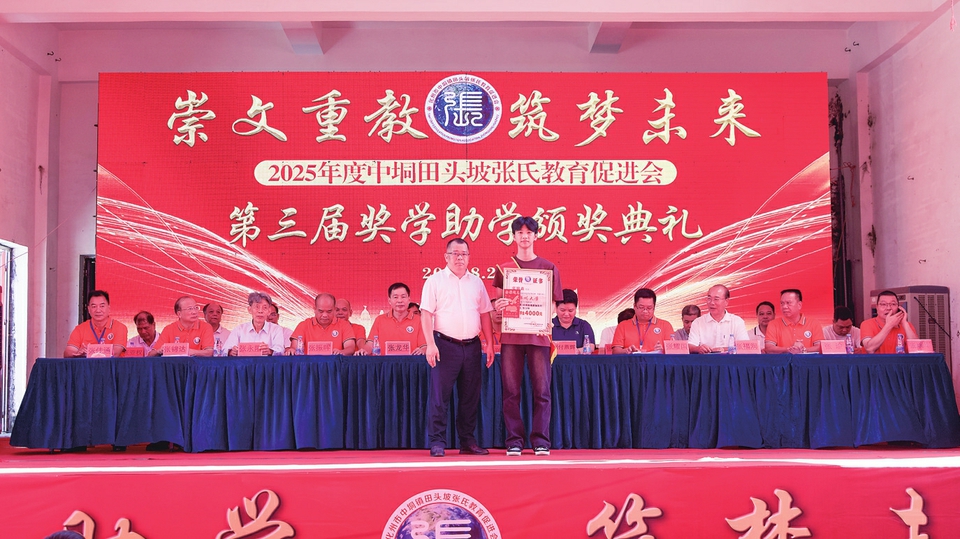 茂名晚报讯 8月23日,在化州市中垌镇党委、政府的积极推动下,在社会各界爱心力量的大力支持下,化州市中垌田头坡教育促进会2025年度奖学助学颁奖典礼举行。中垌镇党委书记李启山,粤西张氏创会会长张永阳,粤西张氏总会会长张福润,中垌田头坡教育促进会会长张龙华,中垌田头坡教育促进会执行会长张振晖,粤西张氏总会廉江、吴川、信宜分会会长,中垌田头坡教育促进会成员,杰出乡贤代表及受表彰学生共1000余人欢聚一堂,共享教育硕果,共庆学子成长。