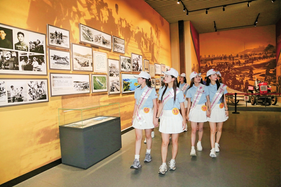 选手在露天矿生态公园博物馆参观采风。