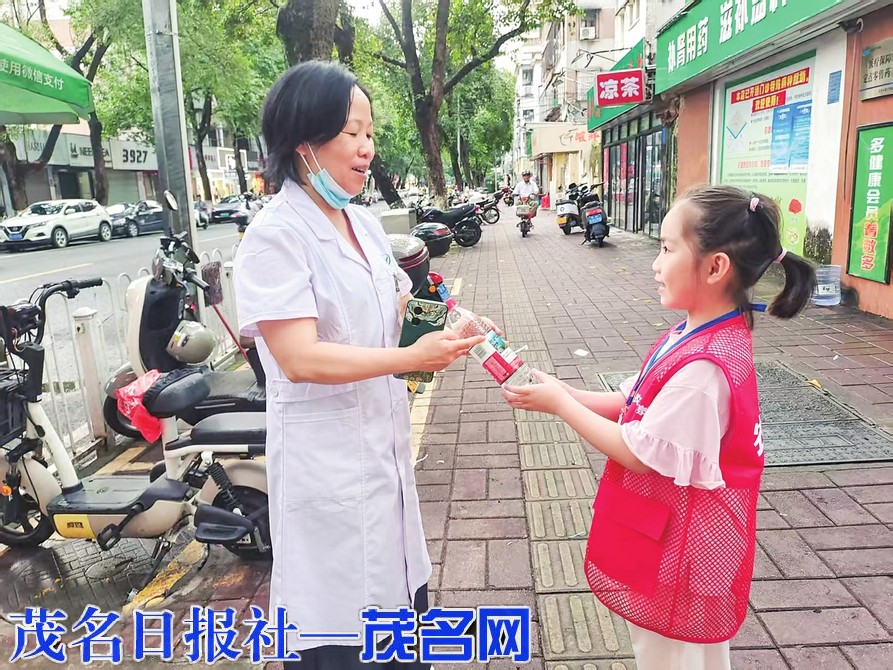 下午3点,15组茂名日报社全媒体小记者家庭陆续抵达集合点签到。在简短的活动介绍后,每组家庭各自领取饮用水奔赴不同区域,为快递员、外卖员、环卫工人、交警、安保人员、网约车及货车司机等户外劳动者送去清凉。孩子们在家长的陪伴下,亲手将水递给正在忙碌的一线工作者,并真诚地道一声“您辛苦了”。