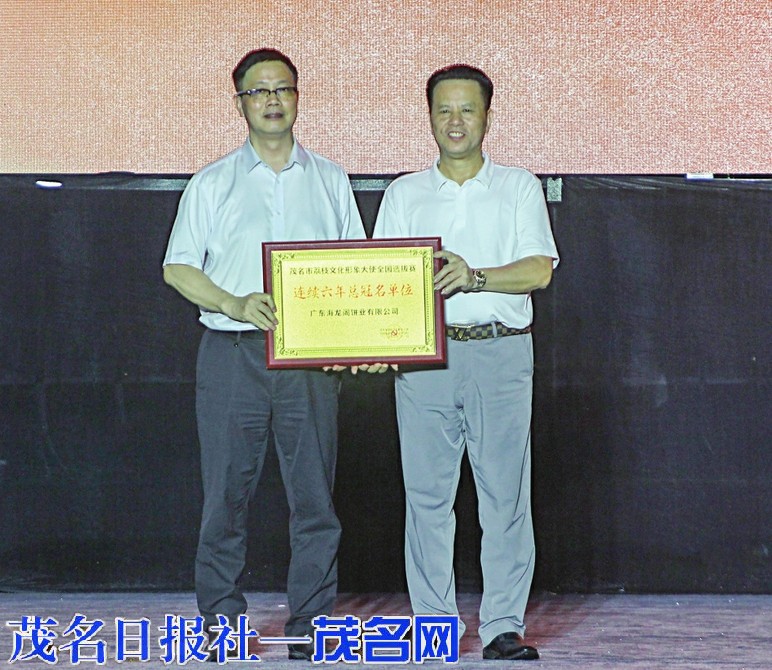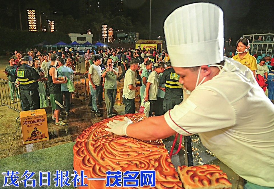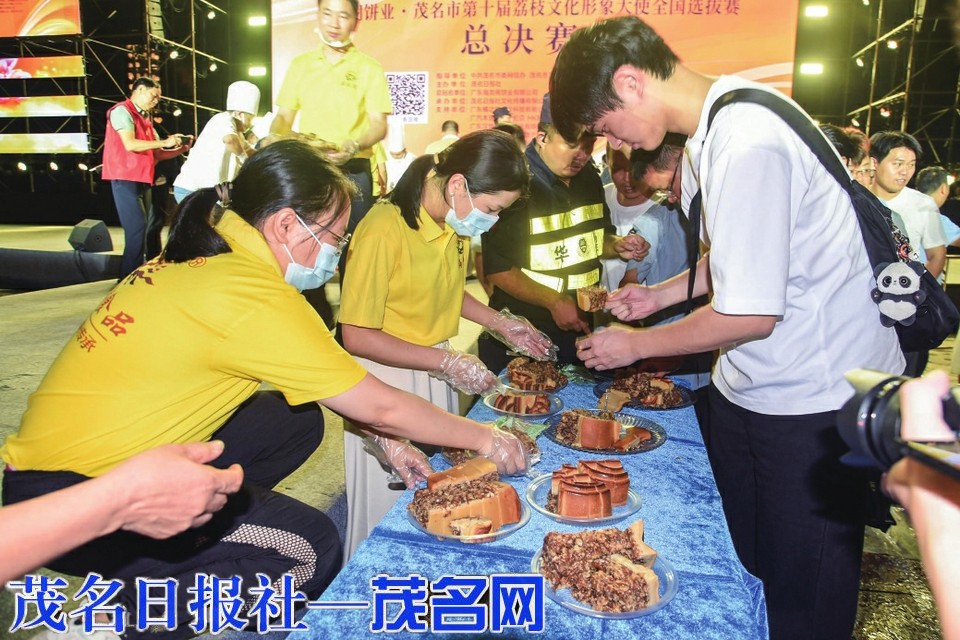 适逢中秋佳节临近,晚会巧妙地融入了“茂名月饼名城”的元素。尾声阶段,总冠名单位海龙阁饼业特制一个重达200斤的“超级月饼”亮相舞台,领导嘉宾、选手与观众共同分享这份象征团圆与甜蜜的礼物,现场观众大排长龙,将现场气氛推向最高潮。海龙阁饼业总经理戴仁禧表示,作为扎根茂名的本土企业,海龙阁已连续六年冠名该赛事,积极推广“茂名荔枝”与“茂名月饼”品牌,延伸产业价值。他强调,文化是品牌的根基,企业始终坚守传统技艺,同时不断创新营销方式,推动茂名月饼走向更广阔的市场。