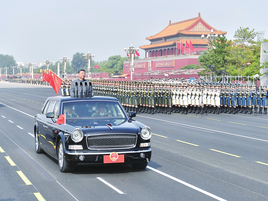 9月3日,纪念中国人民抗日战争暨世界反法西斯战争胜利80周年大会在北京天安门广场隆重举行。这是中共中央总书记、国家主席、中央军委主席习近平检阅受阅部队。 新华社记者 李刚 摄