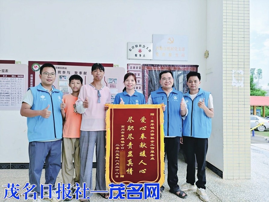 茂名晚报讯 记者 黄楚凡 通讯员 李亚琼 9月10日,尿毒症患者黄女士专程来到高州东岸镇丹修社会工作服务点,将一面写有“爱心奉献暖人心,尽职尽责显真情”的锦旗送到李社工的手中,并再三表达感激之情。
