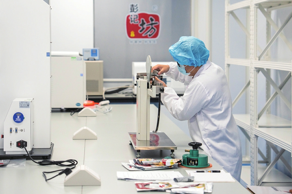 2024年11月24日,在湖南宁乡经开区一家预制菜企业食品检测中心,工作人员在检测食品包装材料。 新华社记者 陈思汗 摄