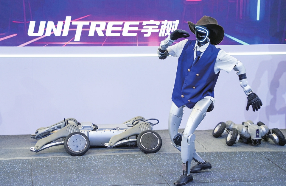 9月19日,在南宁国际会展中心人工智能专馆,一台人形机器人表演舞蹈。 新华社记者 周汀鹭 摄