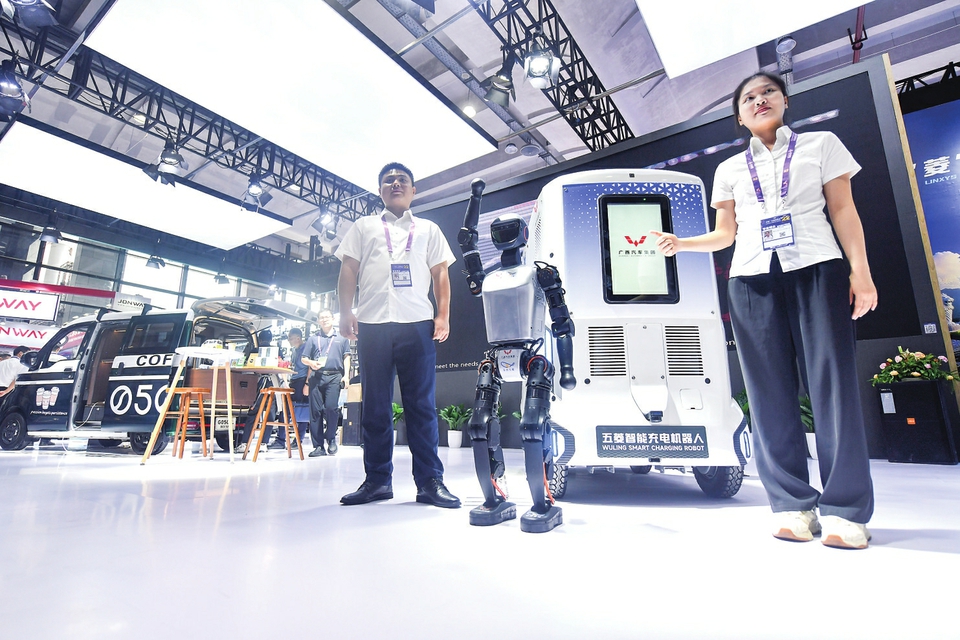 ▲9月19日在南宁国际会展中心拍摄的一台智能充电机器人。新华社记者 黄孝邦 摄