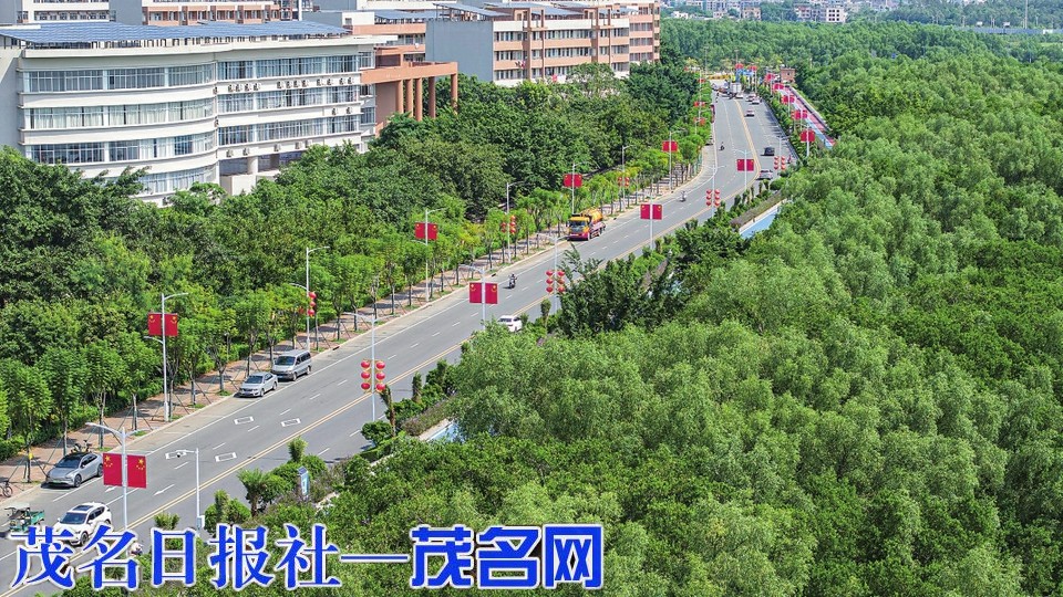电白区海堤路挂满了国旗庆祝国庆。茂名日报社全媒体记者 周泽佳 摄