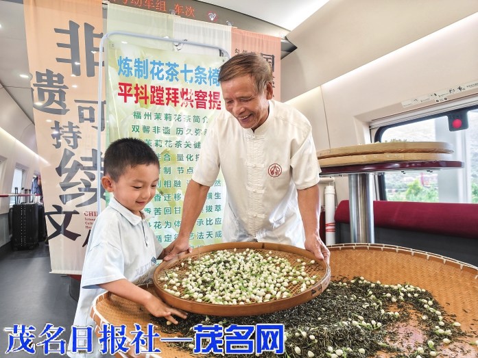 作为茉莉花茶的传统产区,福州市茉莉花茶窨制工艺已入选第一批《福建省省级非遗与旅游融合发展推荐目录》。这项古老的技艺正通过生动鲜活的展示方式,在高速行驶的列车上,赢得越来越多年轻旅客的青睐与认可。