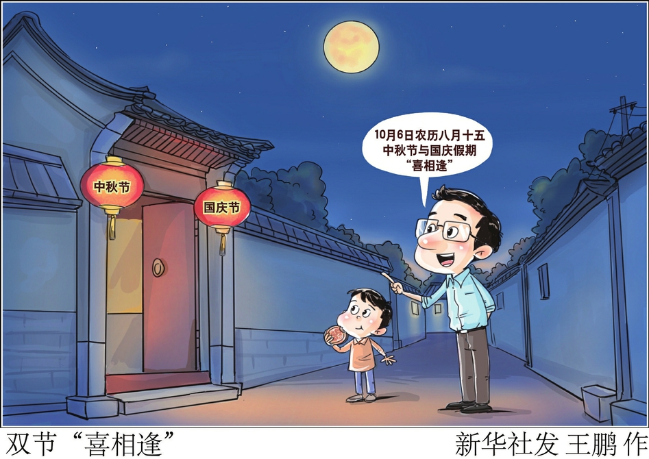 双节“喜相逢”。 新华社发 王鹏 作