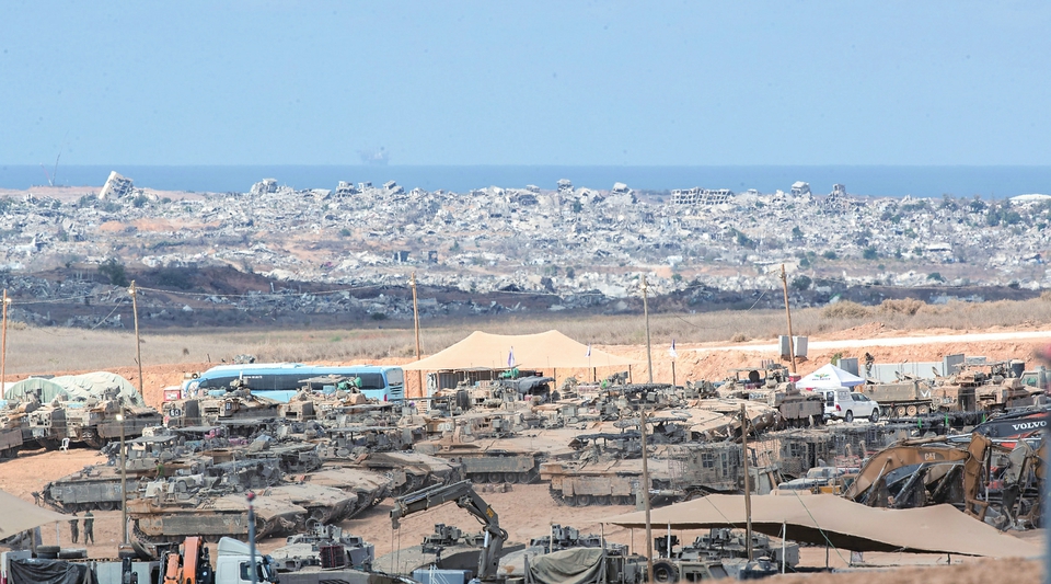 这是10月10日拍摄的位于加沙边境的以军部队。 新华社记者陈君清摄