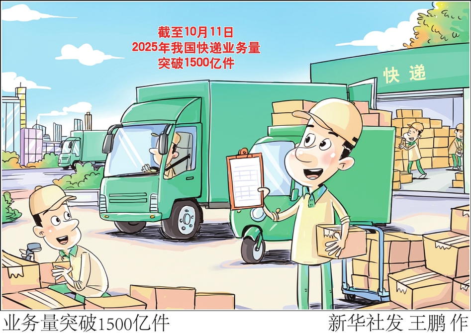 新华社北京10月12日电(记者 叶昊鸣)记者12日从国家邮政局获悉,根据国家邮政局监测数据显示,截至10月11日,2025年我国快递业务量突破1500亿件,比2024年提前37天。