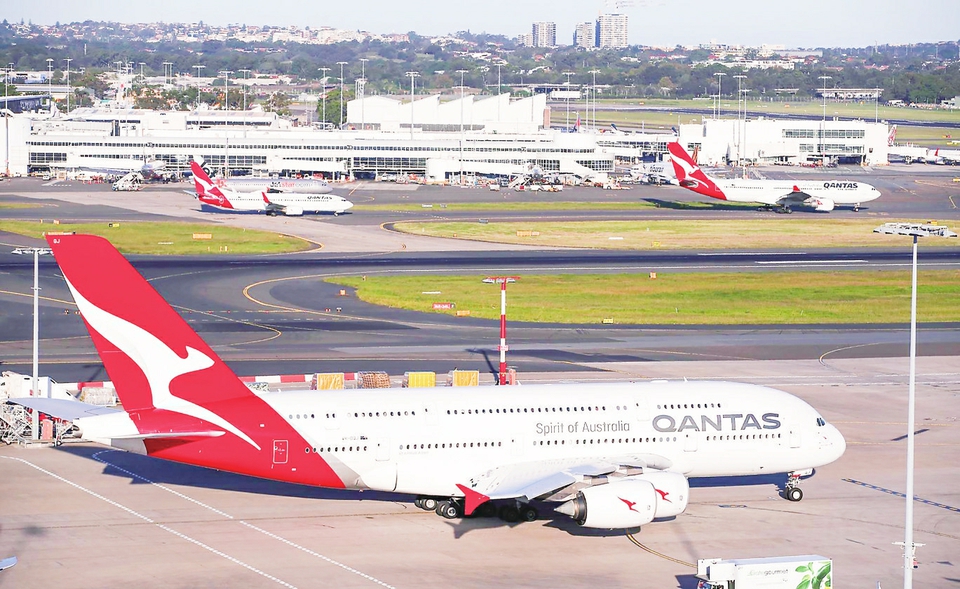 2020年3月18日,多架澳洲航空客机停泊在澳大利亚悉尼机场。新华社记者 白雪飞 摄