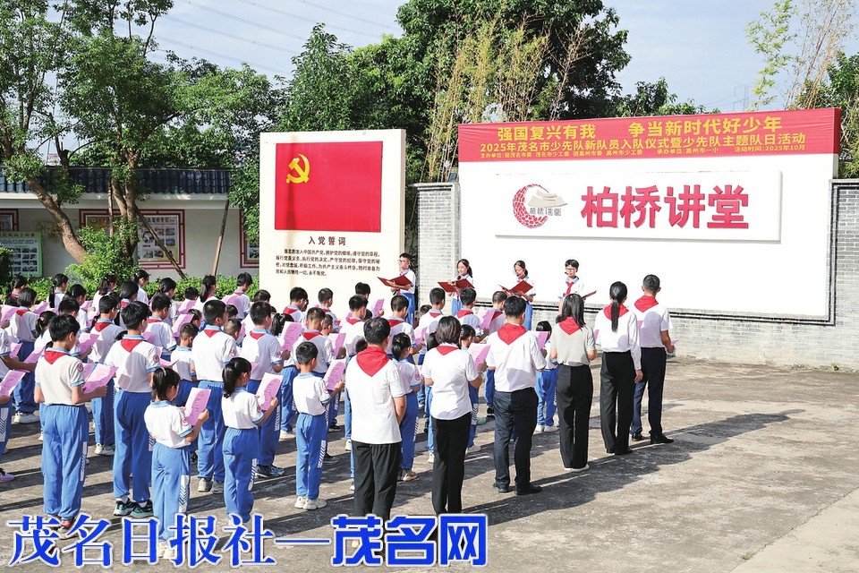 茂名晚报讯 记者 李君平 通讯员 武涵宇 10月13日上午,茂名市少先队在柏桥讲堂举办了“强国复兴有我争当新时代好少年”2025年茂名少先队新队员入队仪式暨少先队主题队日活动,少先队辅导员代表、学校少先队员等100余人参加活动。他们聚集在队旗下,以形式多样的活动表达了争做新时代好少年的信心。
