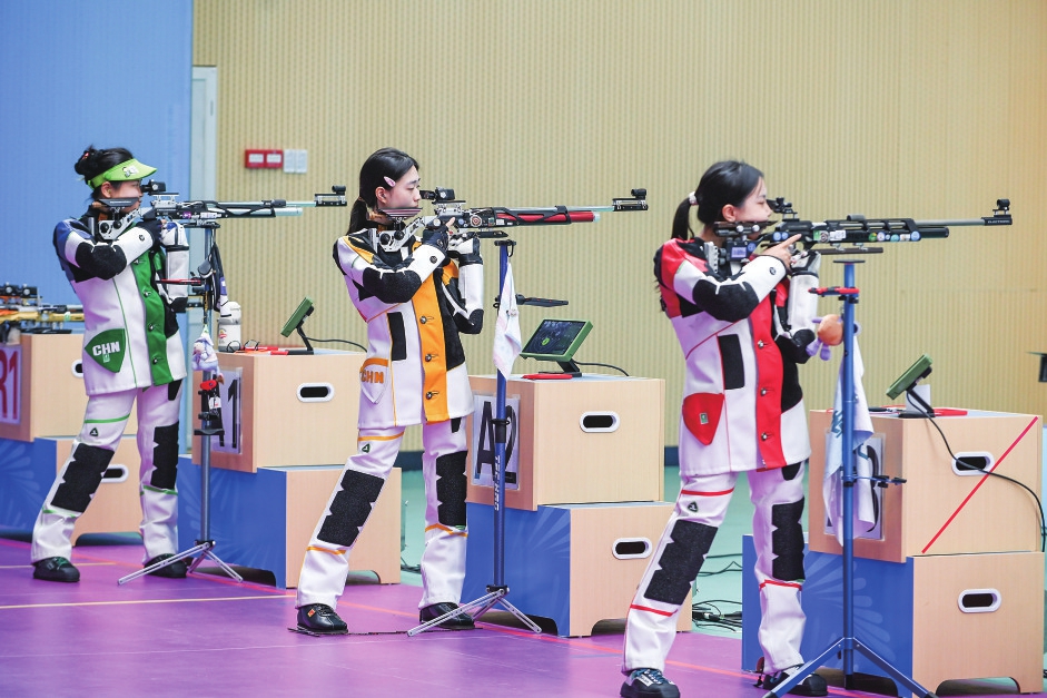 女子10米气步枪团体决赛同样悬念迭生。面对堪称“王炸”的浙江队韩佳予、黄雨婷、王子菲,由彭鑫露、管佳妮、刘汝璇组成的湖南队差点爆冷。在“抢16分”赛制下,双方六次打平。在12:12的关键时刻,前一天刚打出超过世界纪录成绩的浙江队三人无一发失误,连下两城卫冕成功。