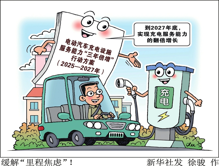 缓解“里程焦虑里程焦虑”!” 新华社发 徐骏作