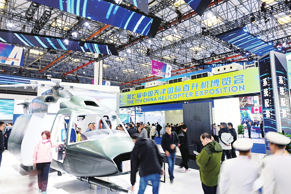 ▲10月16日,观众在天津直博会直升机馆内参观。新华社记者 赵子硕 摄