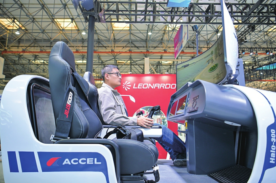 ▲10月16日,观众在天津直博会低空经济馆内体验一款eVTOL(电动垂直起降飞行器)。新华社记者 赵子硕 摄