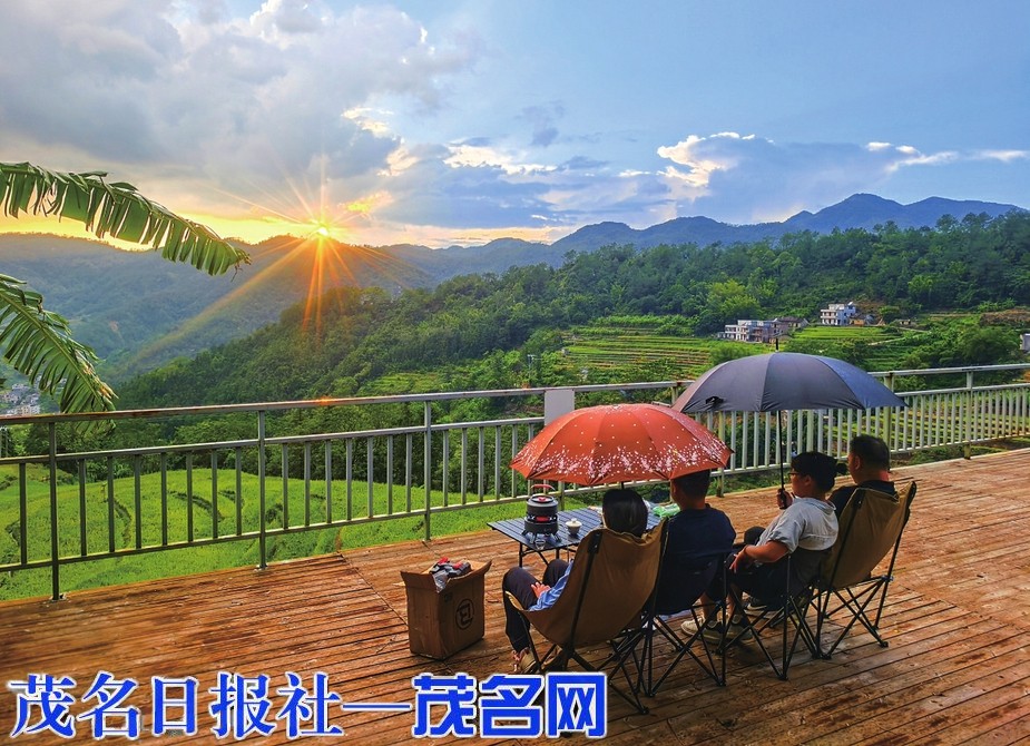 傍晚时分,几个游客从外地赶来,在观景台上摆好小桌小凳,悠闲地煮水品茗。又支起音响,伴着节奏,激情演唱。纯厚、优美的歌声,在梯田上空久久回荡。夕阳西下,映红了他们的脸,充满了诗情画意。他们说,这里清新、静谧,让人的身心一下子就放松下来。他们要继续在观景台上休憩,好好体验乡村夜晚的氛围。