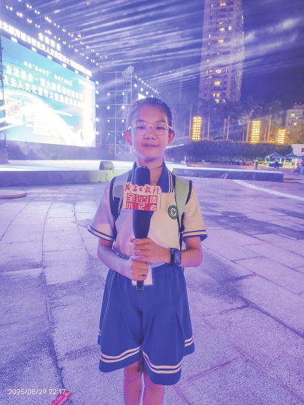 正当我沉浸在现场氛围中时,记者老师突然向我招手让我参与现场播报,我深吸一口气,自信地走上前接过话筒,随着清晰的声音在现场传开,整个过程一气呵成,竟一遍就过了!尽管播完后我的双腿还有一丝紧张、微颤,但听到老师那句“很好,说得好流畅”时,心底瞬间涌上满满的自豪。