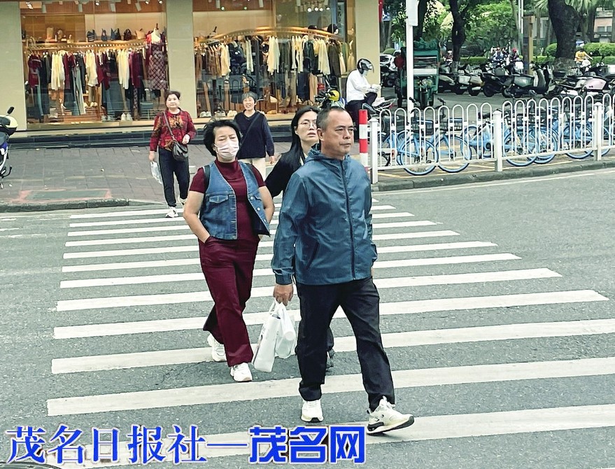 10月21日,受冷空气影响,市区气温骤降,天气清凉,市民长袖出行,添衣保暖。茂名日报社全媒体记者 李颜东 摄