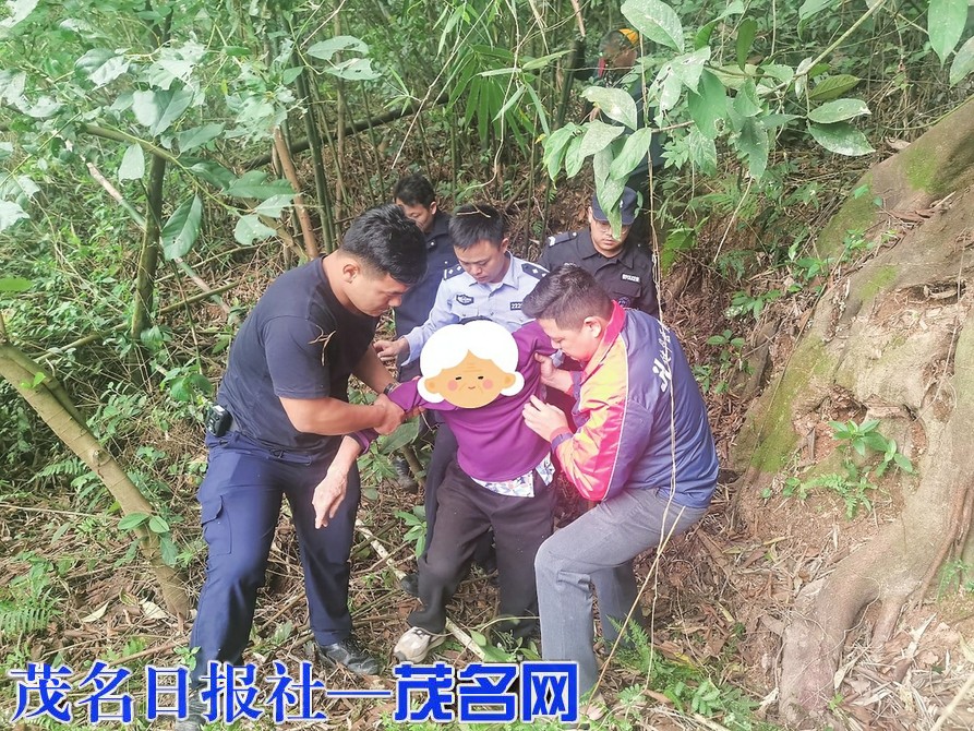 23日15时许,令人振奋一幕出现。在“雷碧”的精准引领下,搜救人员终于在白鸠地鸭蔗村山岭上找到张阿婆。此时张阿婆精神状态尚可,但身体较虚弱,民警黄文辉和老人家属小心搀扶张阿婆下山,将其送回中垌圩家中。看到老人平安找回,家属们感动不已,连声道谢。