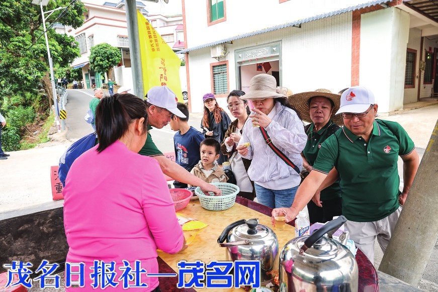 登高路线沿线村民自发准备凉茶给登高者饮用。茂名日报社全媒体记者 吴昊 摄