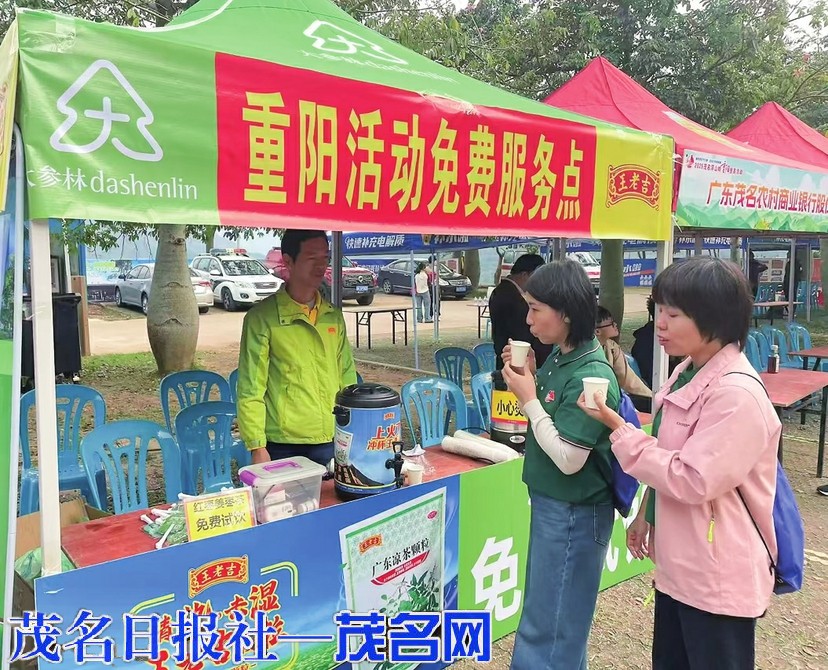 在浮山冼太庙停车场,设置了“百业兴”展示长廊,通过图文并茂的宣传展板,全面展示了高州荔枝产业、绿色工厂、新能源产品等发展与成效,让登高者对“百千万工程”带来的变化有了更直观的理解。同时,举行了“千镇旺”重阳市集,高州各镇街的展位呈一字排开,纷纷展示了各自的特色农产品,登高者可边看边品尝。登高者谢女士说:“没想到活动途中有这么多好玩、好看、好吃的,收获满满。印象最深刻的除了风景,就是美丽村景,现在乡村就像旅游景点一样颜值内涵并存。”