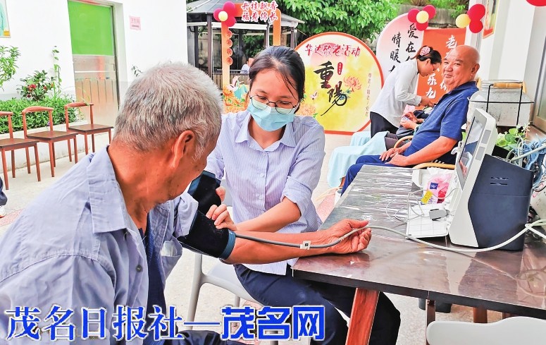 华达公司志愿者为社区老人开展健康监测、智能按摩、养生泡脚、磁疗、艾灸等服务项目。茂名日报社全媒体记者 岑稳 摄