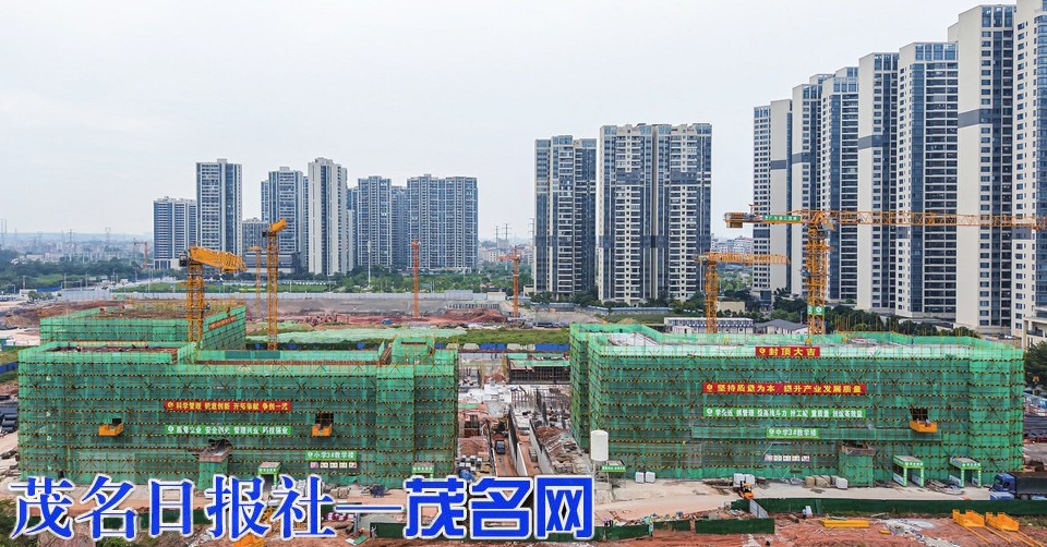 趣园中学和趣园小学各有一栋教学楼已封顶。茂名日报社全媒体记者 周泽佳 摄