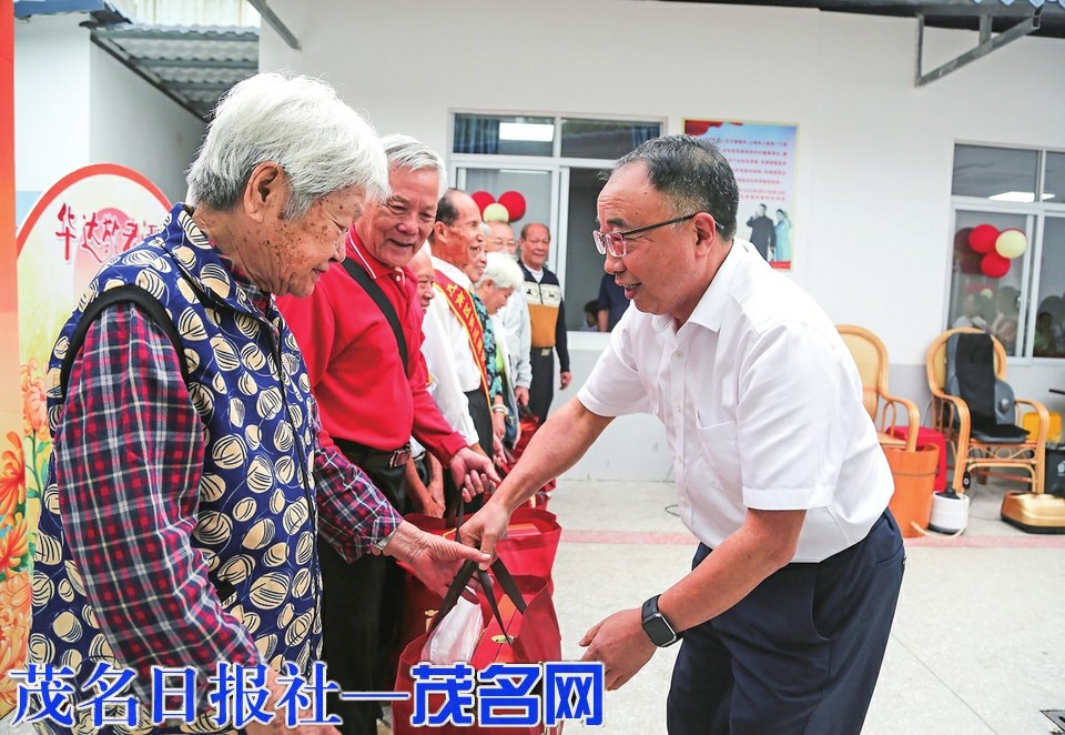 华达公司为社区老人送上重阳节健康礼品。茂名日报社全媒体记者 岑稳 摄