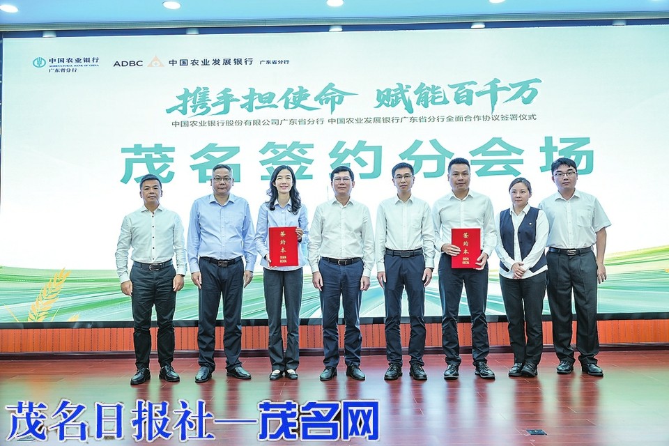 茂名晚报讯记者谭斯惠通讯员卢荣武为助力广东省实施“百县千镇万村高质量发展工程”,促进城乡区域协调发展,10月28日上午,中国农业银行广东省分行与中国农业发展银行广东省分行在广州主会场举行“携手担使命赋能百千万”全面合作协议签约仪式。