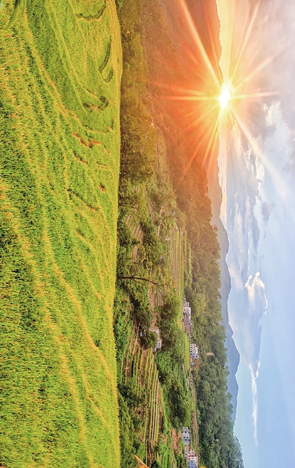 晚霞照梯田