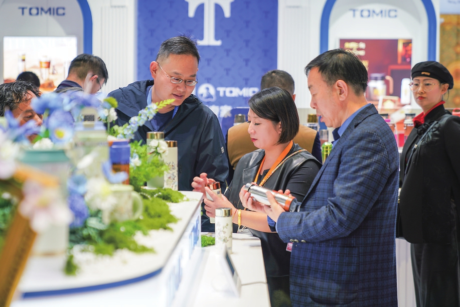11月5日,参观者选购水杯。新华社记者 柳文惠 摄