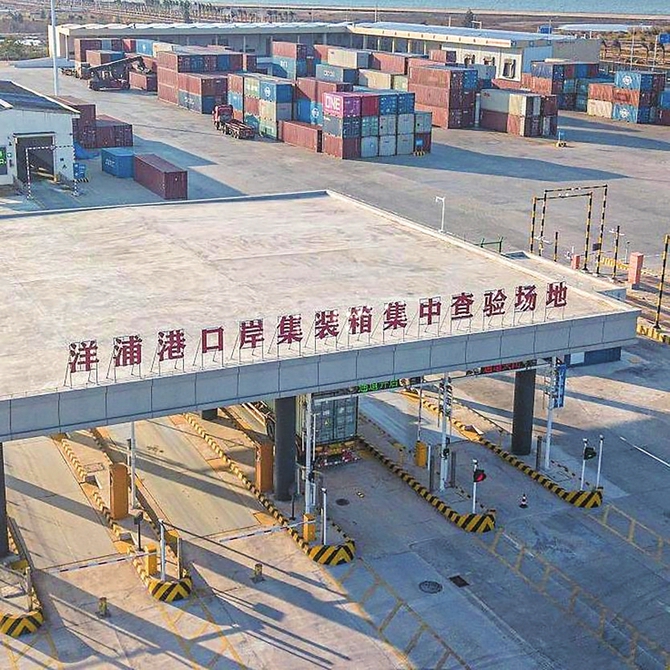2025年1月12日在海南洋浦经济开发区拍摄的洋浦港封关运作项目智能卡口(无人机照片)。新华社记者蒲晓旭摄