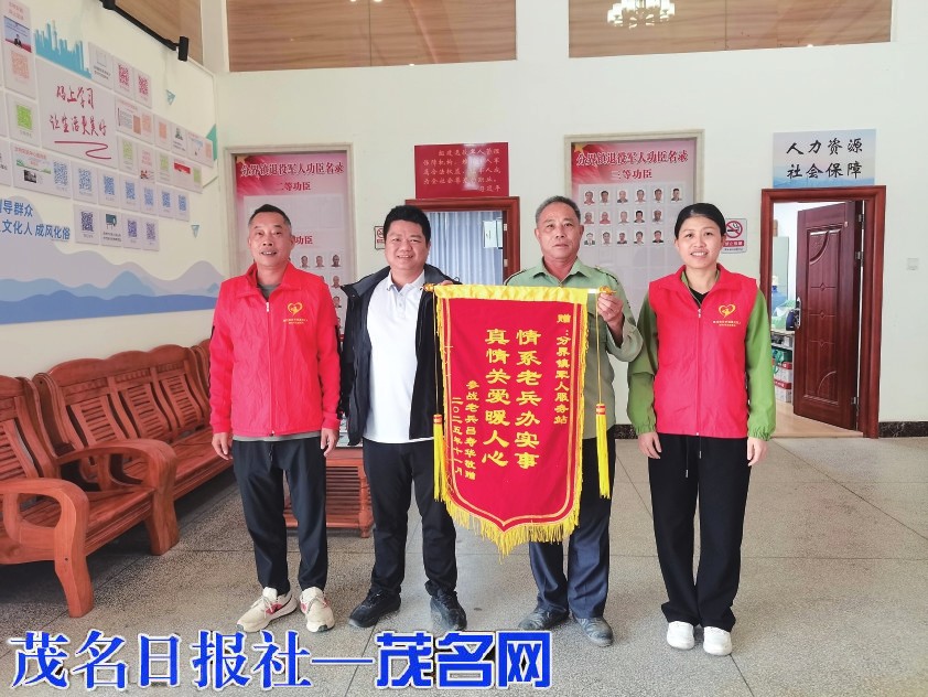 茂名晚报讯记者黄楚凡 通讯员余林红 包晓婷 “感谢服务站的同志们,我们之前真不熟悉这项救助政策,多亏你们上门讲解,还全程协助我儿子顺利办成了申请!”近日,高州市分界镇退役军人吕叔将绣有“情系老兵办实事,真情关爱暖人心”字样的锦旗,专程送到分界镇退役军人服务站,紧紧握着工作人员的手激动地说。