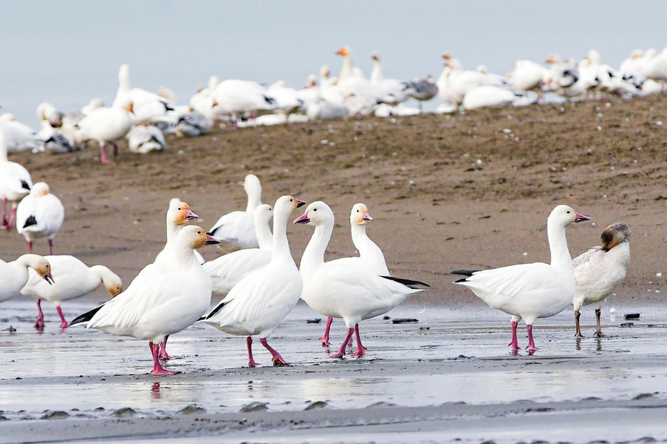 这是11月8日在加拿大里士满艾奥纳海滩拍摄的雪雁。新华社发(梁森 摄)