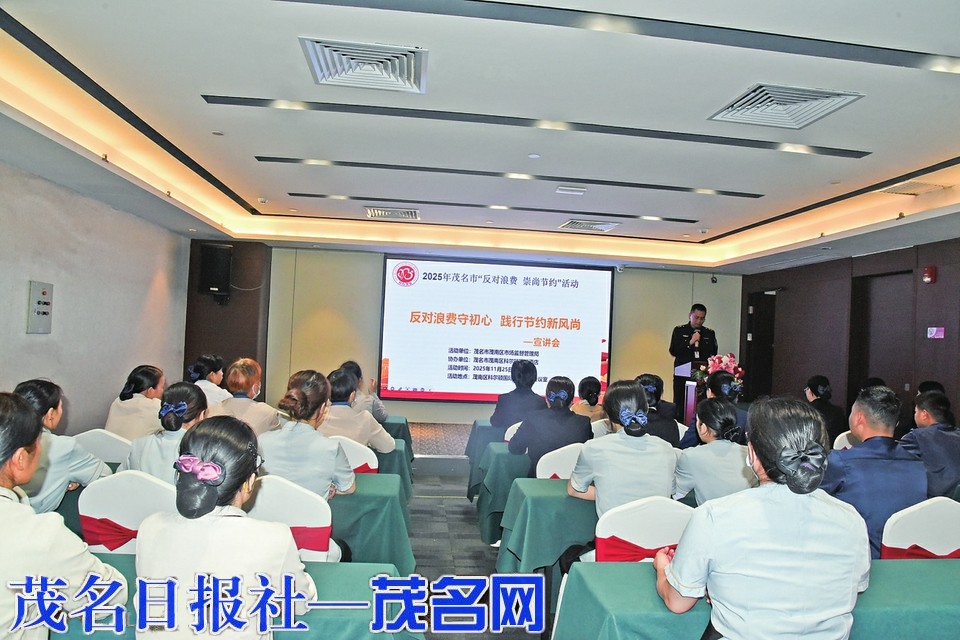 茂名晚报讯 记者谢力忠 为深入贯彻落实《中华人民共和国反食品浪费法》及中央办公厅、国务院办公厅印发的《粮食节约和反食品浪费行动方案》,推动形成“厉行节约、反对浪费”的社会风尚,11月25日,茂南区市场监督管理局结合我市餐饮行业实际,在茂南区科尔顿国际酒店开展主题为“反对浪费守初心践行节约新风尚”的宣讲活动。