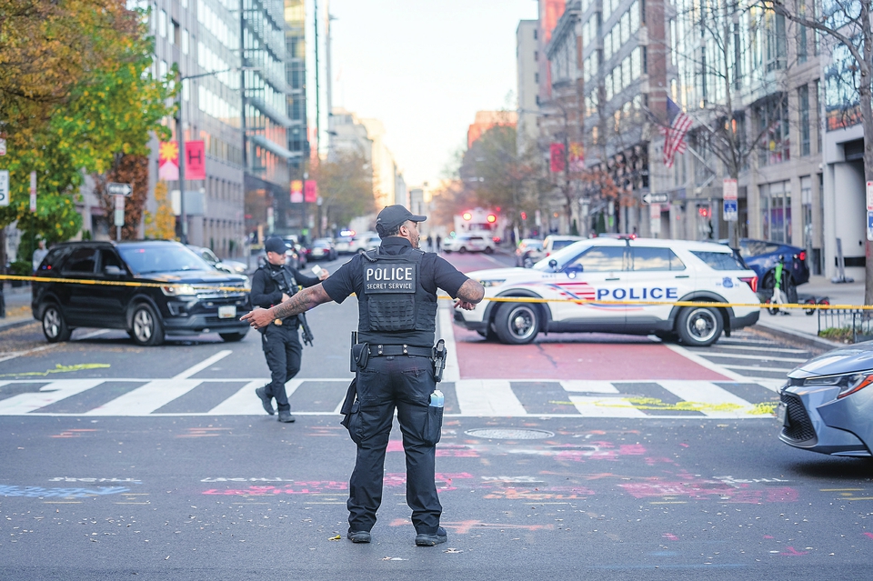 11月26日,在美国首都华盛顿,警方封锁案发现场附近街道。 新华社记者胡友松摄