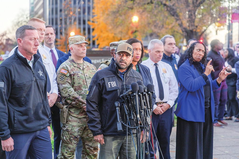 11月26日,在美国首都华盛顿,联邦调查局局长帕特尔在新闻发布会上回答记者提问。