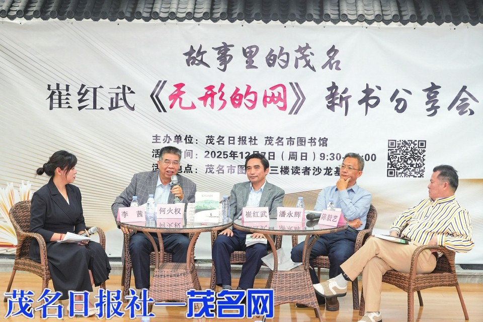 昨日上午,由茂名日报社与茂名市图书馆联合主办的“故事里的茂名——崔红武长篇小说《无形的网》新书分享会”在市图书馆举行。这部长达32万字的长篇力作,以个体命运映照时代变迁,在本地文坛激起阵阵回响。来自茂名及东莞等地的60余位作家齐聚一堂,共同探讨“无形的网”背后交织的情感故事与时代印记。